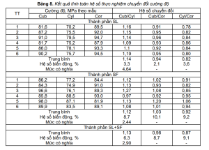 Chuyển đổi về mẫu lập phương và mẫu trụ còn được thực hiện theo hệ số chuyển đổi thực nghiệm tại Bảng 8 với Cub/Cor=0,98 và Cyl/Cor=0,87.