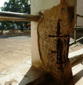 Những năm gần đây một số nhà chung cư có hiện tượng thép chân cột bê tông tường tầng hầm bị rỉ, mặc dù các công trình này mới xây được 5 – 7 năm và ở xa vùng biển (không bị ảnh hưởng bởi clorua từ biển), gây thiệt hại lớn cho các chủ nhà. Vị trí bị khuyết tật ăn mòn ở phần thấp, ít khi được CĐT quan tâm hoặc bị các vật liệu ốp (gạch, giấy, gỗ..) ốp bao che dẫn đến không phát hiện kịp thời. Cốt thép chân cột rất quan trọng nếu bị hư hại dẫn đến không thể khắc phục thì toàn bộ phần còn lại của tòa nhà cũng không còn giá trị. Do đó việc kiểm định công trình có dấu hiệu ăn mòn là cần thiết, nó sẽ giúp CĐT có biện pháp ngăn ngừa rủi ro tiềm ẩn và đảm bảo an toàn cho công trình.