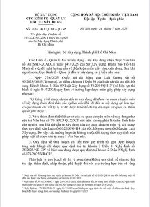 V/v: Phúc đáp Văn bản số 701/SXD-QLXDCT ngày 14/7/2025 của Sở Xây dựng Thành phố Hồ Chí Minh về việc đề nghị hướng dẫn về điều kiện miễn giấy phép xây dựng.