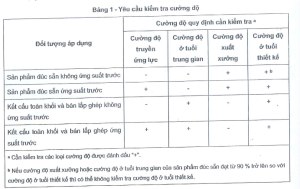 - Trong thời gian đầu sản xuất, khi sản xuất sản phẩm đơn lẻ, khi không thể thực hiện đủ số lượng thử nghiệm cần thiết để tính được độ đồng nhất cường độ hoặc khi có sự thống nhất của các bên – theo quy trình KT.