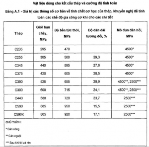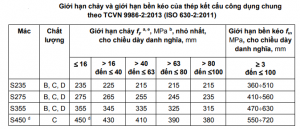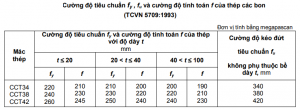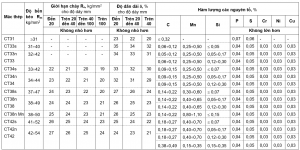 Bảng – Cơ lý tính và thành phần hoá học của thép các bon kết cấu thông thường (TCVN 8298 : 2009)