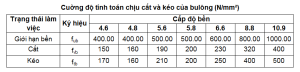 – Thử kéo mẫu với tải trọng phá hỏng của bu lông, vít và vít cấy theo bảng 9 và 10 của phụ lục 2 TCVN 1916-1995: 5 mẫu với mỗi lô vật liệu