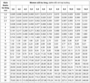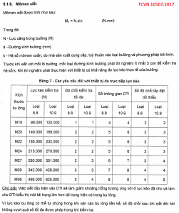 Bảng – Yêu cầu về lực xiết bu lông trong quá trình lắp đặt (TCVN 8298 : 2009)